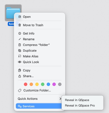 On the Desktop, after selecting a folder, open the Context Menu > Services > Reveal in QSpace.