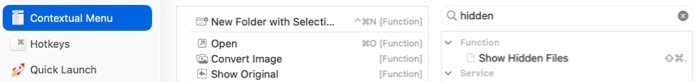 Context Menu Enable the Show Hidden Files in the context menu to display hidden files.
