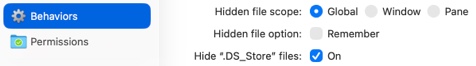 Hidden file scope Choose Global, Window, or Pane to customize the area where hidden files are toggled.