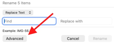 Select multiple items and press Enter to batch rename, then click Advanced.