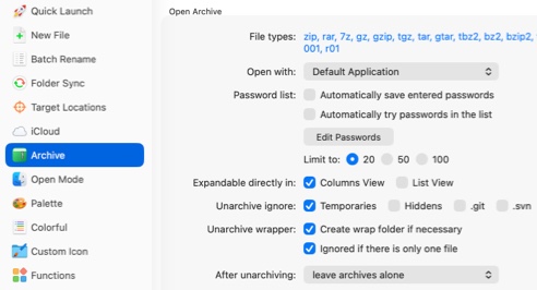 File types Customize the list of archive extensions to open with QSpace.