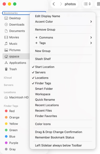 Remove from Sidebar Hide this item from the sidebar, commonly used for external disks or items in the Locations group. To restore, use the Show All option from the group's context menu.