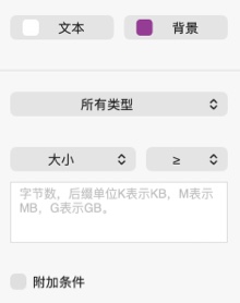 大小 按文件大小过滤匹配,比如: > 1G,匹配超过 1GB 大小的文件。