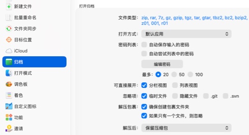 可直接展开 可设置在 分栏视图 和 列表视图 中以文件夹的形式展开压缩包。