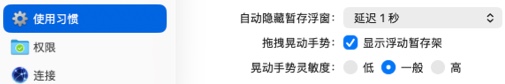 通过拖拽文件时左右 晃动手势,呼出浮动暂存架。