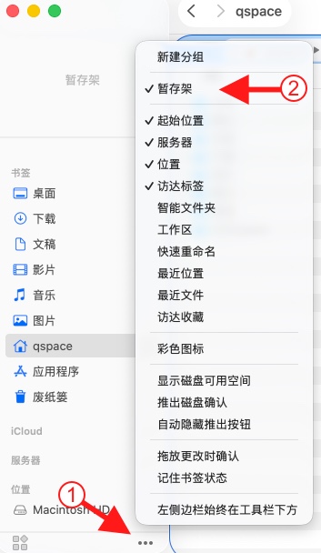 在 侧边栏 显示暂存架。