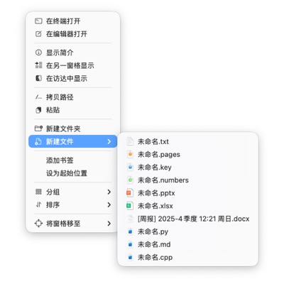 通过 右键菜单 > 新建文件,来选择创建文件。