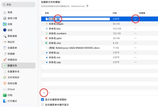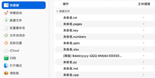 在 QSpace 偏好设置 > 快捷键 页面,自定义 快捷键 来创建指定类型的文件。